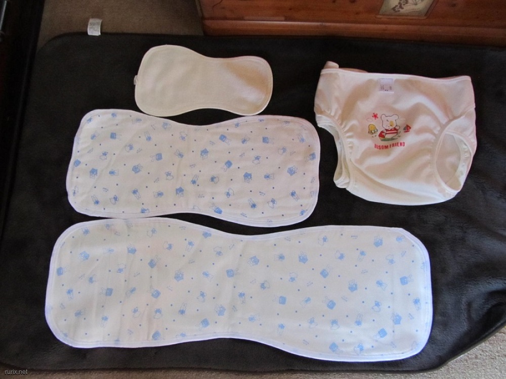 基本ラミネート生地で調整のしやすい股おむつカバーに数枚の布おむつで出かけます。